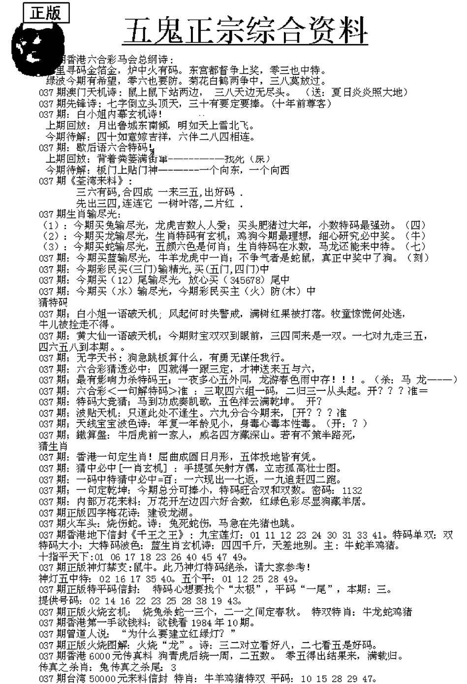 正版六合彩资料B