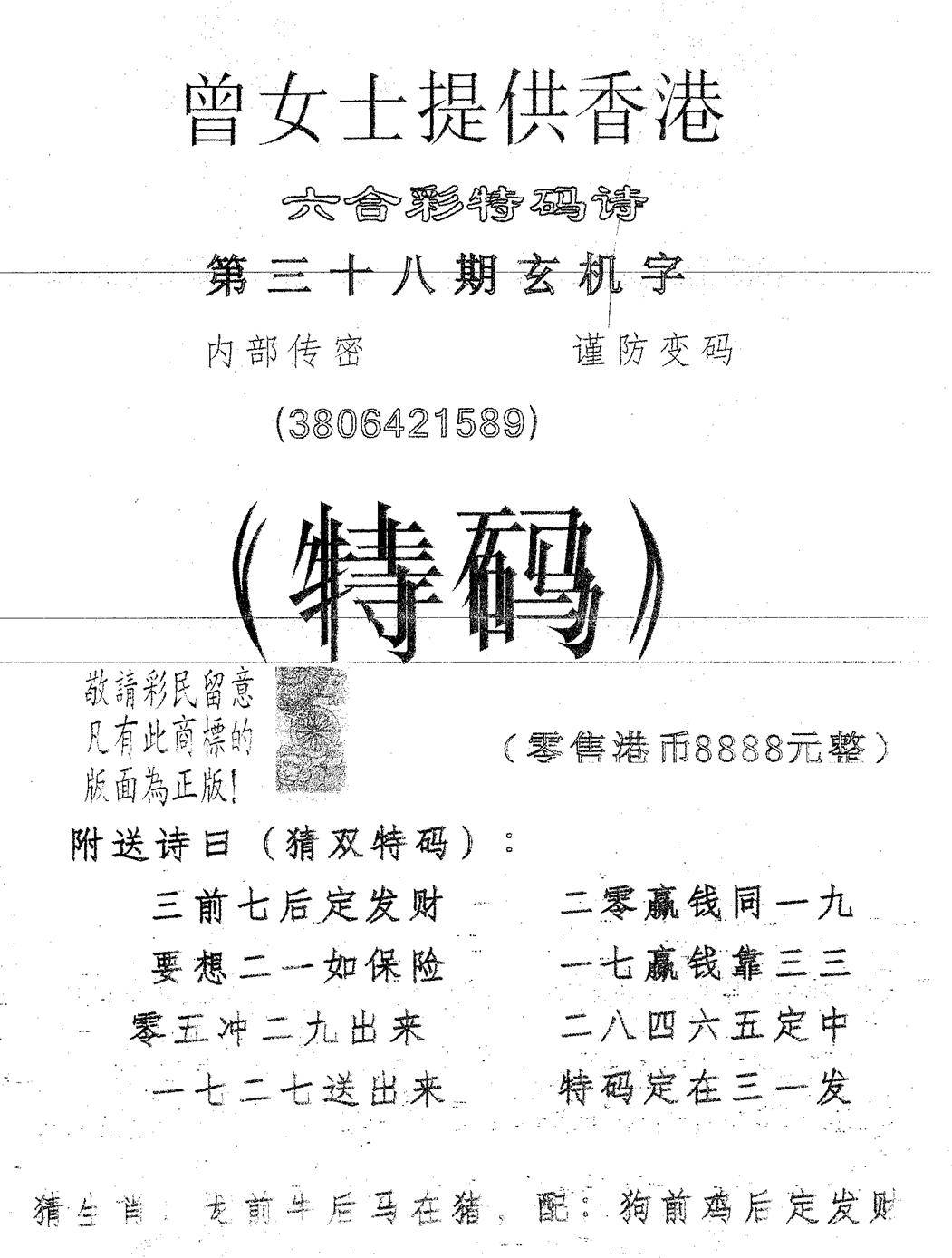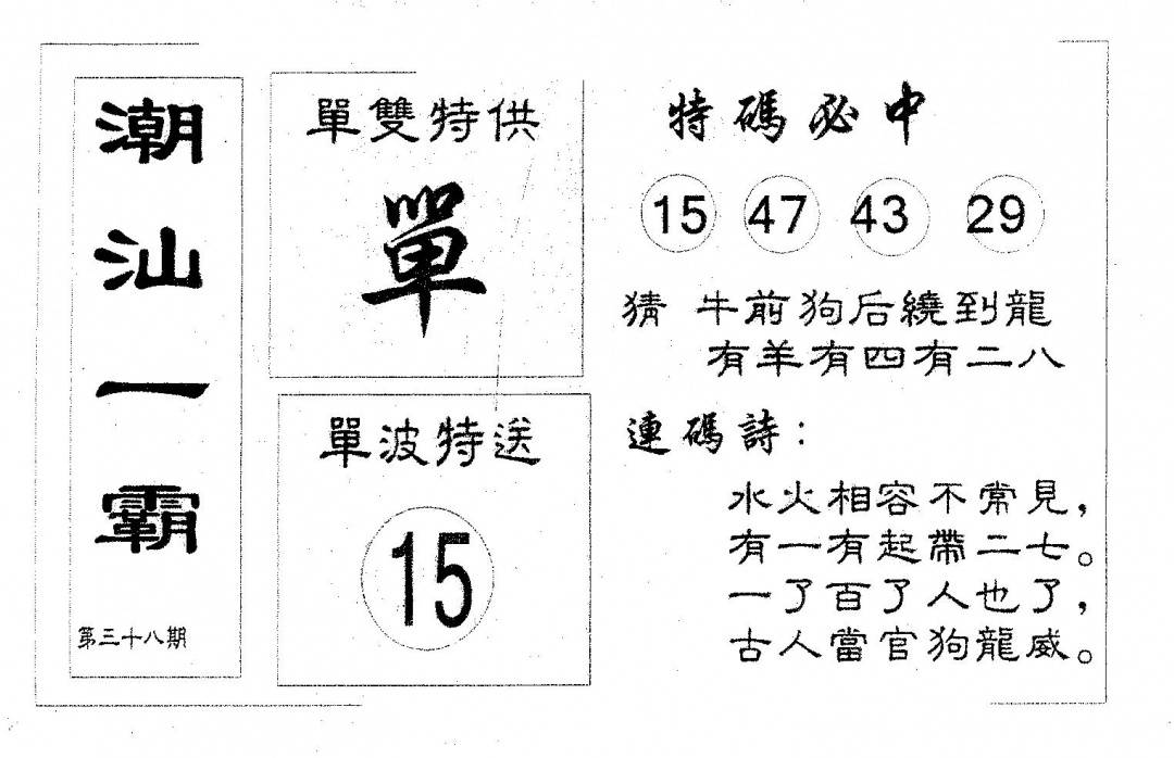郑小姐特码报A