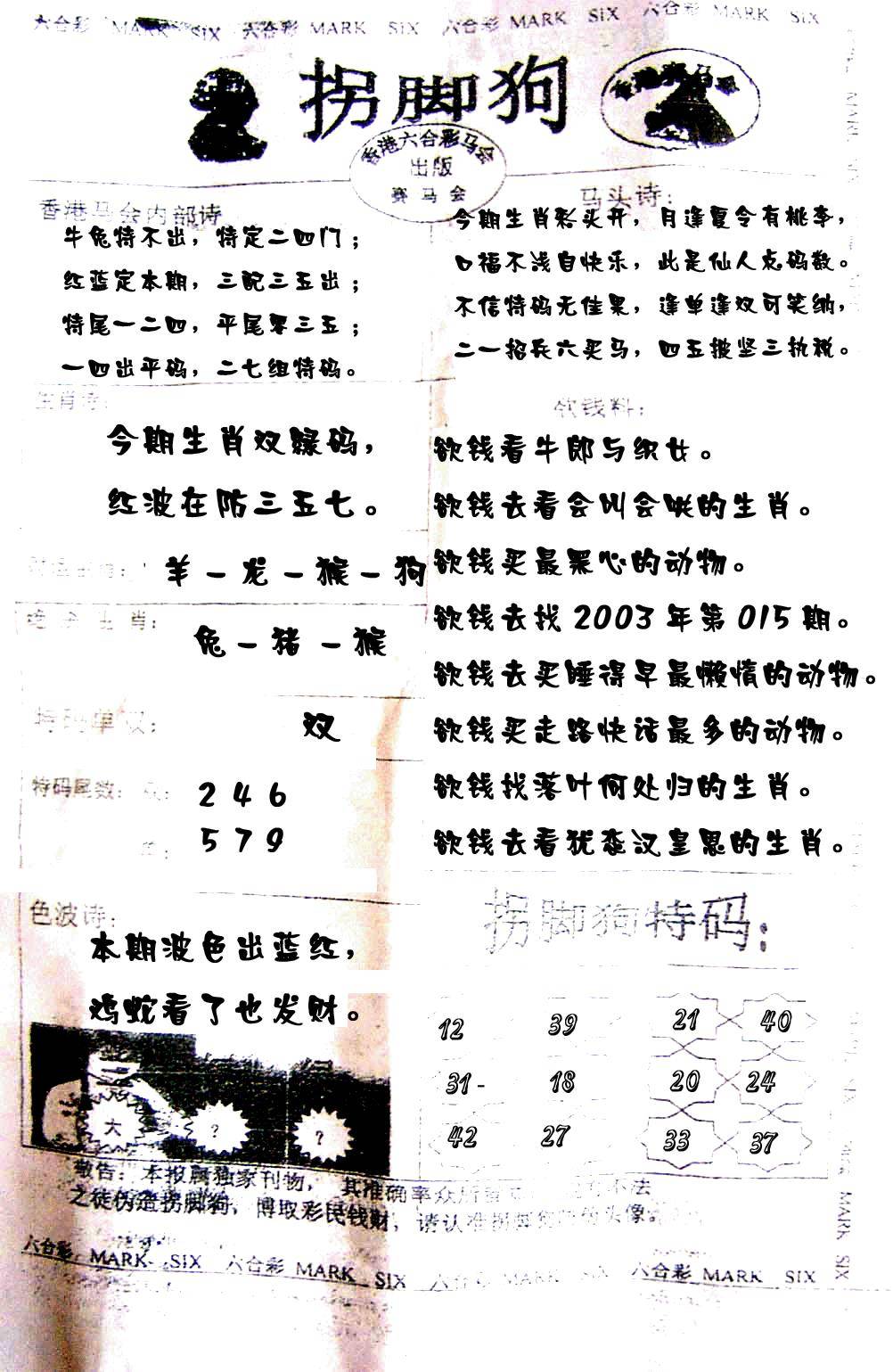 狗不理特码报