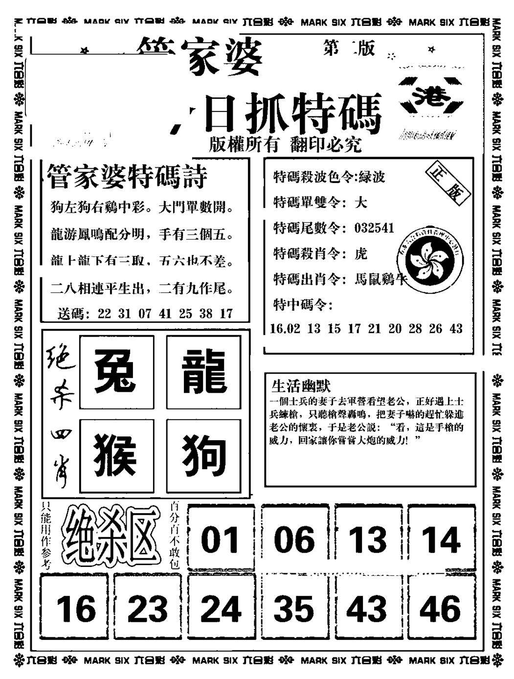 今日抓特码A(正版)