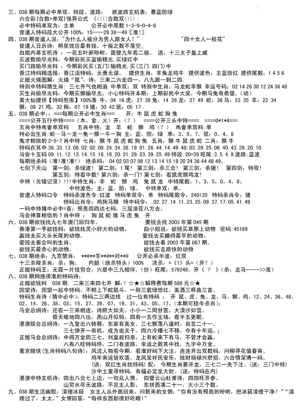 曾道人内幕消息B