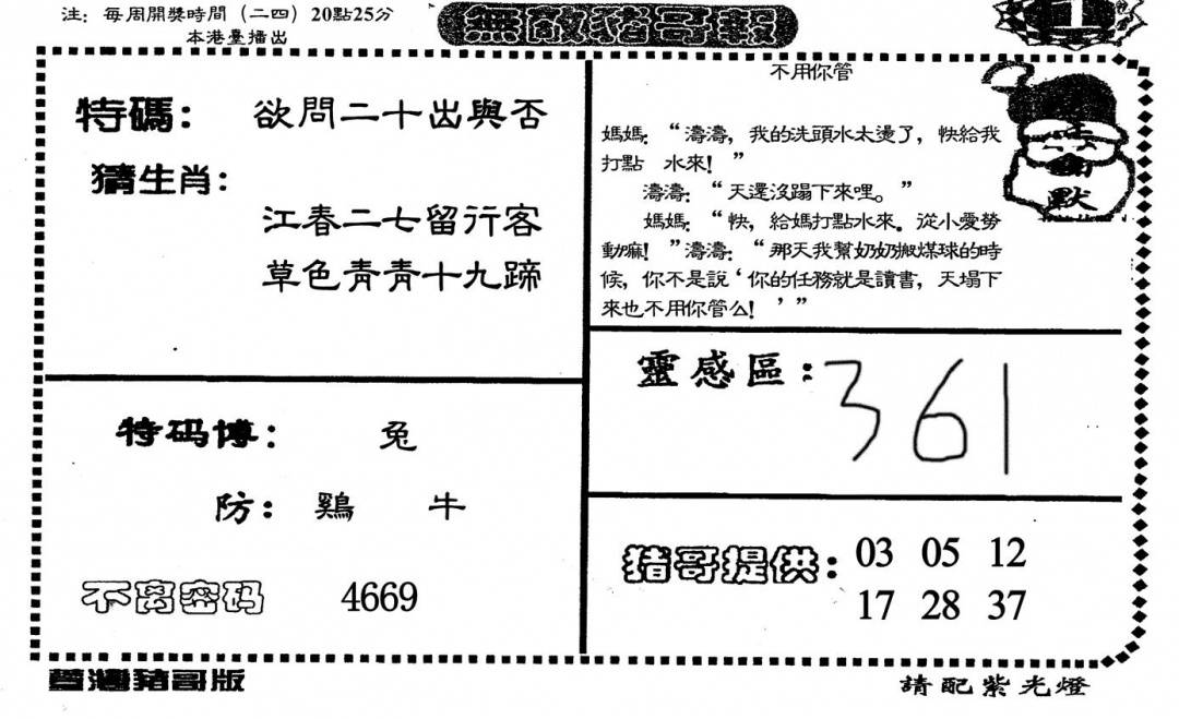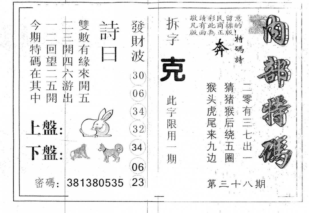 另版心水特码(早图)