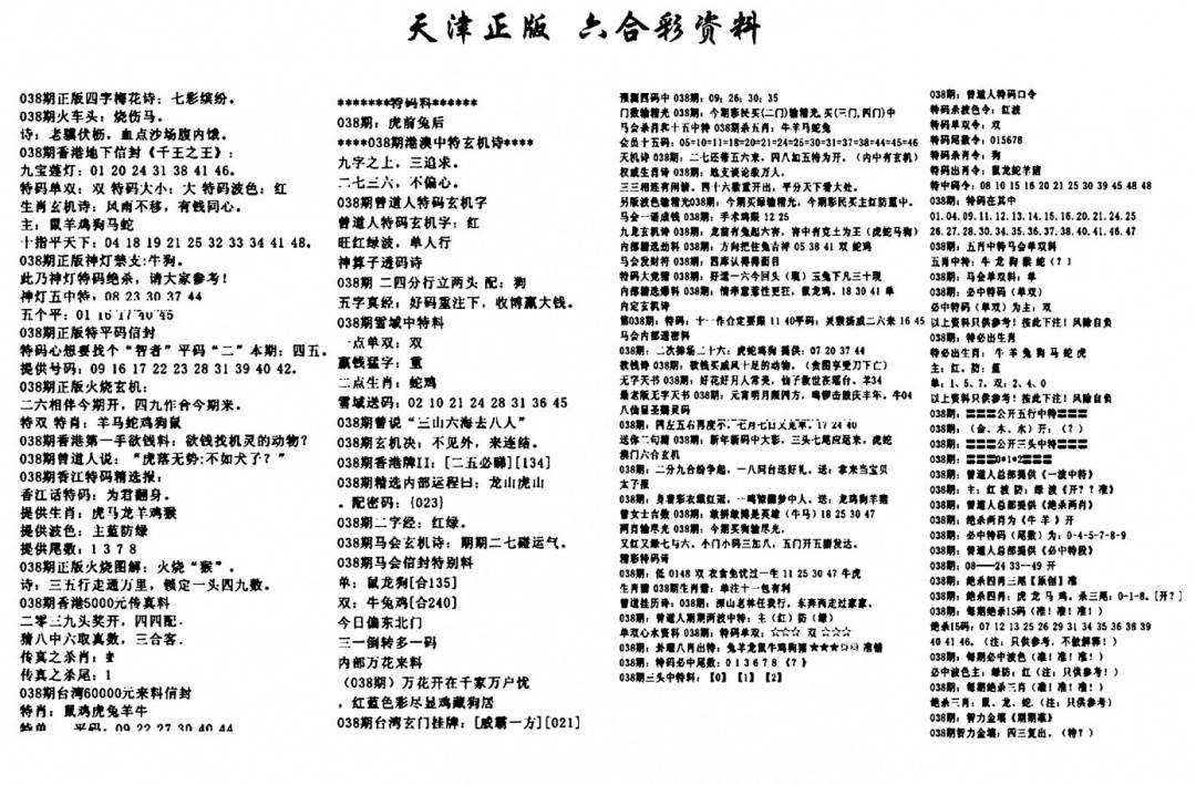 天津正版六合彩资料