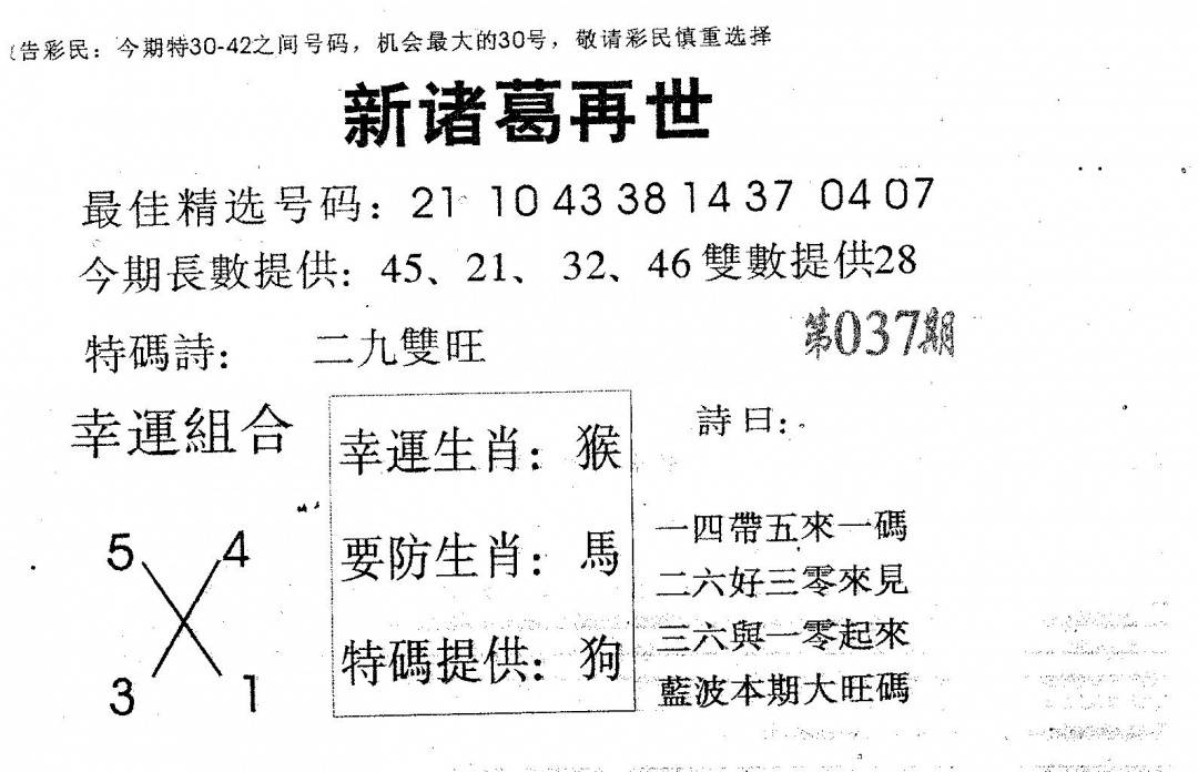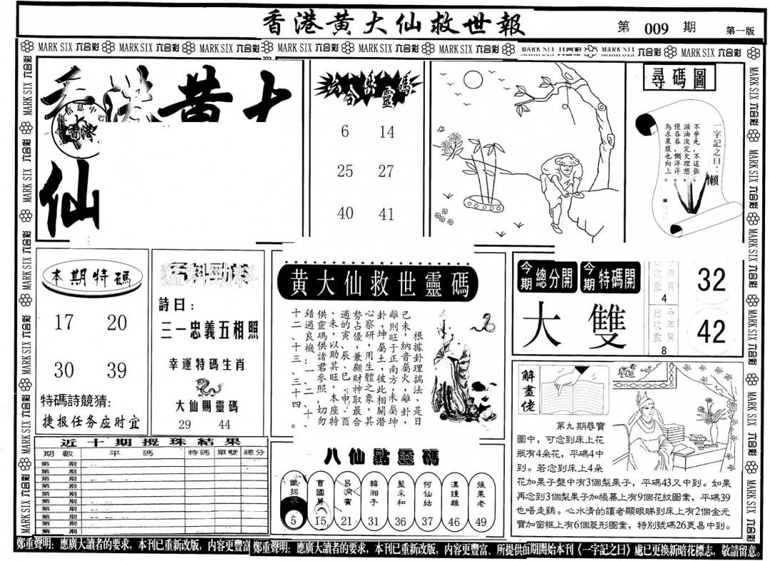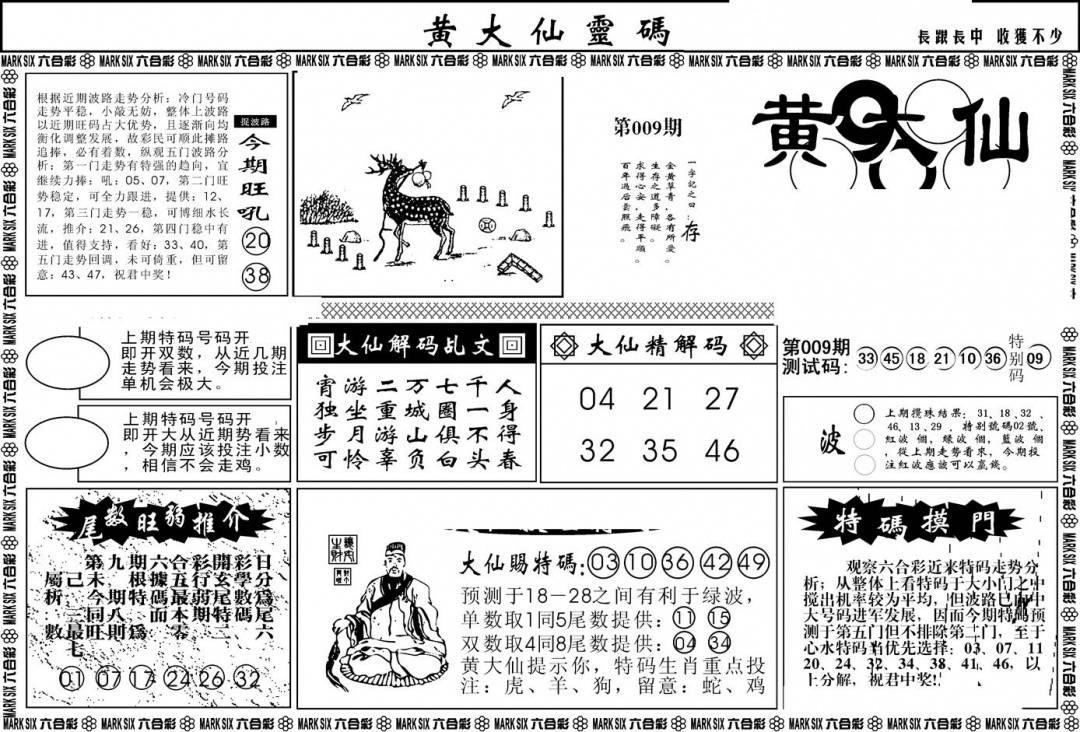 另版黄大仙灵码A
