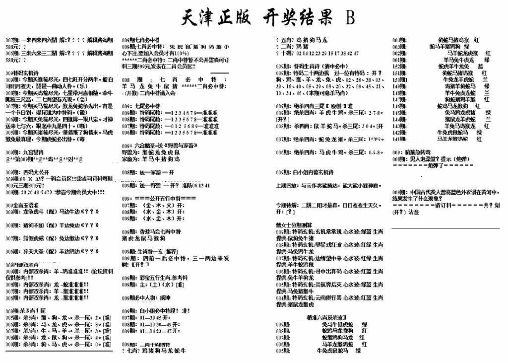天津正版开奖结果B