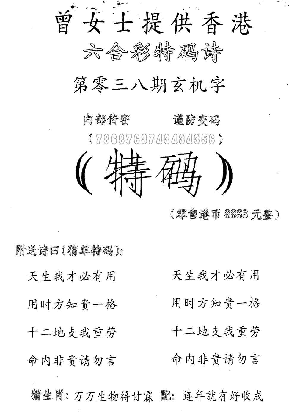 曾女士特码诗